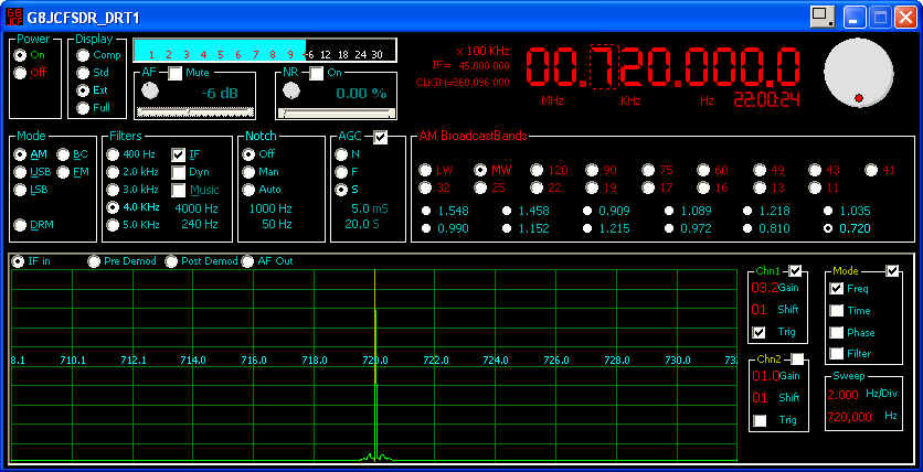 The G8JCFSDR has a built-in Oscilloscope, Spectrum Analyser
